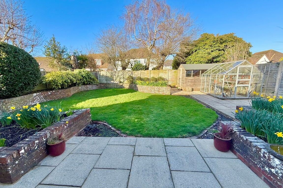 Nestled in a popular residential area of Rustington, West Sussex, this detached bungalow offers a rare opportunity for buyers seeking a home with both character and potential. Set mid-way between Rustington and East Preston, the property is ideally situated for easy access to a choice of bus routes, ensuring effortless journeys to local amenities and neighbouring towns. For those travelling further afield, Angmering mainline railway station is just a short distance away, providing direct connections to London and the South Coast, whilst Rustington village centre and an excellent range of shops lie within 0.75-mile distance.Set well back from the road, the home enjoys a sense of privacy with a generous drive allowing ample parking and a detached garage featuring an electric roll-up door for convenience. The spacious entrance hall leads to three well-proportioned bedrooms, ideal for day to day living or visiting guests.